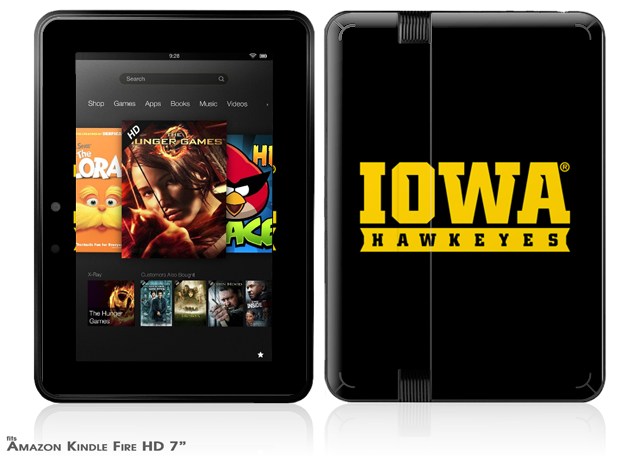 Iowa Hawkeyes 03 Black on Gold Decal Style Skin fits 2012 Amazon Kindle Fire HD 7 inch