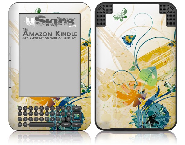 Water Butterflies - Decal Style Skin fits Amazon Kindle 3 Keyboard (with 6 inch display)