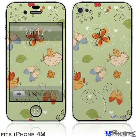 iPhone 4S Decal Style Vinyl Skin - Birds Butterflies and Flowers