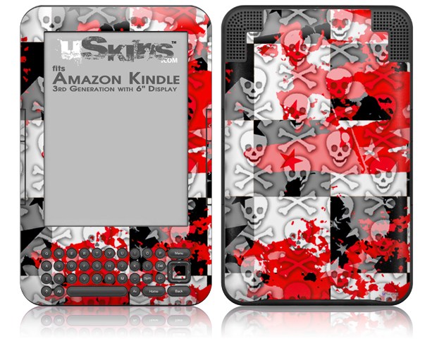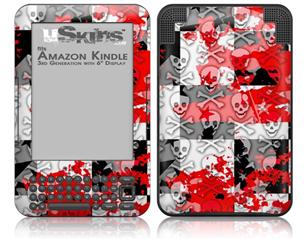 Checker Skull Splatter Red - Decal Style Skin fits Amazon Kindle 3 Keyboard (with 6 inch display)