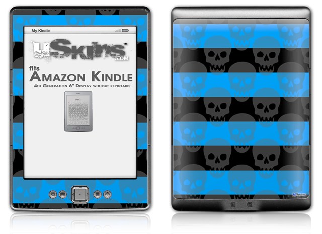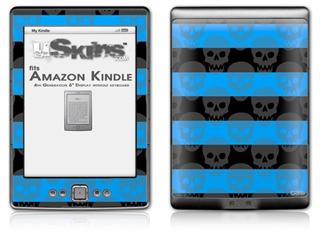 Skull Stripes Blue - Decal Style Skin (fits 4th Gen Kindle with 6inch display and no keyboard)