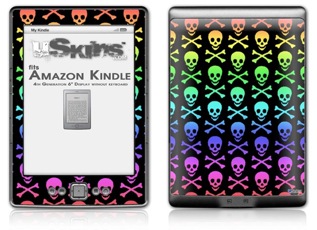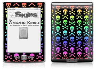 Skull and Crossbones Rainbow - Decal Style Skin (fits 4th Gen Kindle with 6inch display and no keyboard)