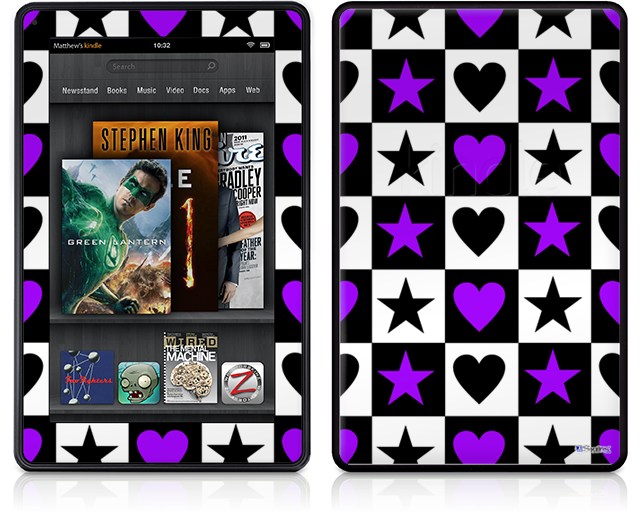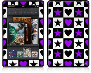 Amazon Kindle Fire (Original) Decal Style Skin - Purple Hearts And Stars