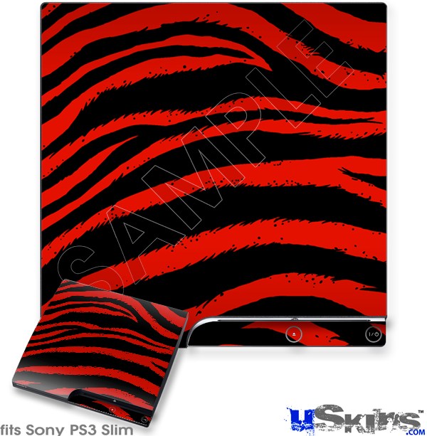 Decal Skin compatible with Sony PS3 Slim Zebra Red