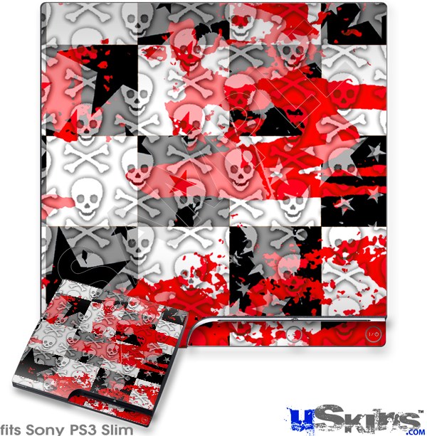 Decal Skin compatible with Sony PS3 Slim Checker Skull Splatter Red