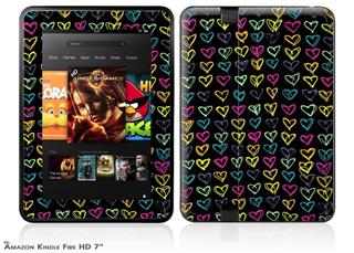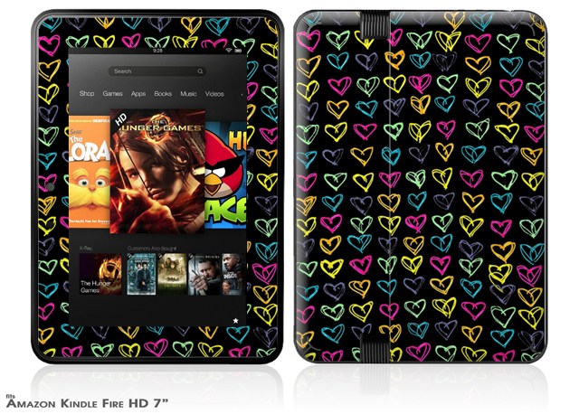 Kearas Hearts Black Decal Style Skin fits 2012 Amazon Kindle Fire HD 7 inch