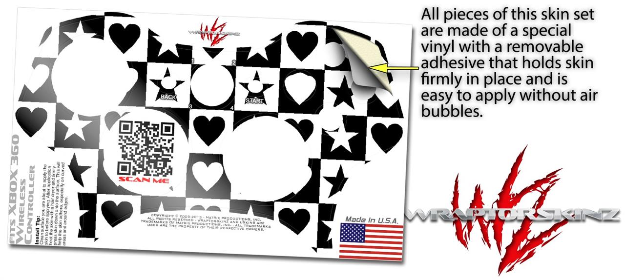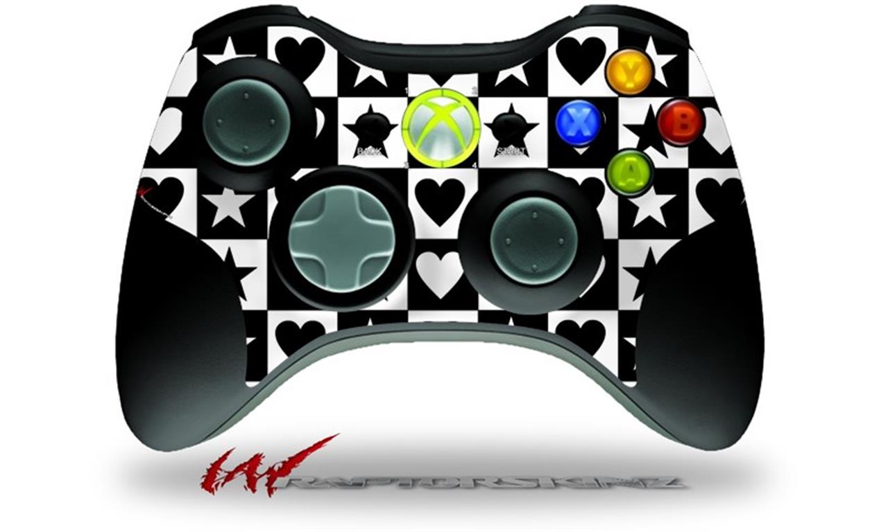 XBOX 360 Wireless Controller Decal Style Skin - Hearts And Stars Black and White (CONTROLLER NOT INCLUDED)