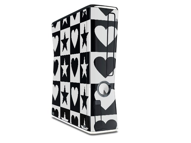 Hearts And Stars Black and White Decal Style Skin for XBOX 360 Slim Vertical
