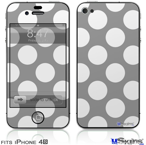 iPhone 4S Decal Style Vinyl Skin - Kearas Polka Dots Whtie On Gray