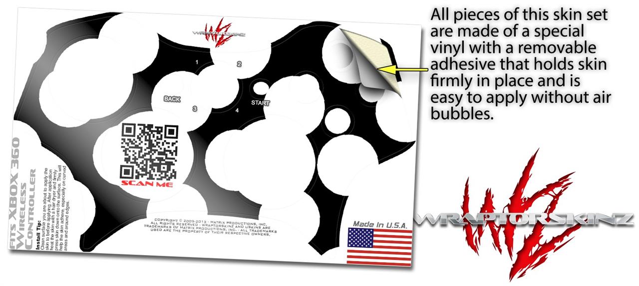 XBOX 360 Wireless Controller Decal Style Skin - Kearas Polka Dots White On Black (CONTROLLER NOT INCLUDED)