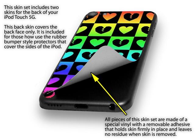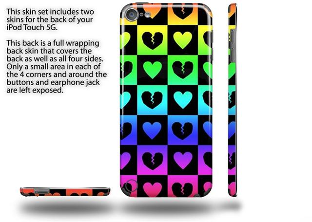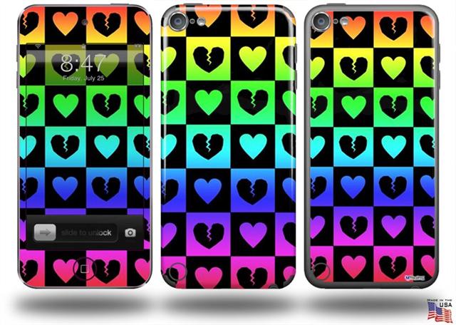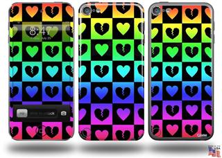 Love Heart Checkers Rainbow Decal Style Vinyl Skin - fits Apple iPod Touch 5G (IPOD NOT INCLUDED)