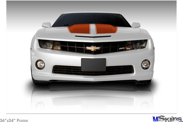 Poster 36"x24" - 2010 Chevy Camaro White - Orange Stripes