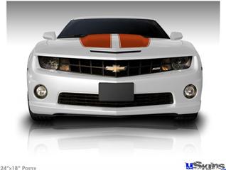 Poster 24"x18" - 2010 Chevy Camaro White - Orange Stripes