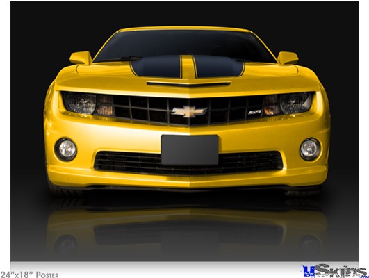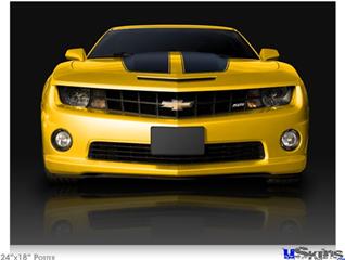 Poster 24"x18" - 2010 Chevy Camaro Yellow - Black Stripes on Black