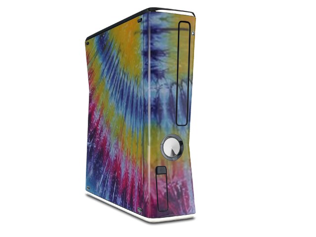 Tie Dye Red and Yellow Stripes Decal Style Skin for XBOX 360 Slim Vertical