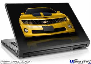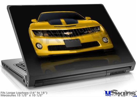 Laptop Skin (Large) - 2010 Chevy Camaro Yellow - Black Stripes on Black