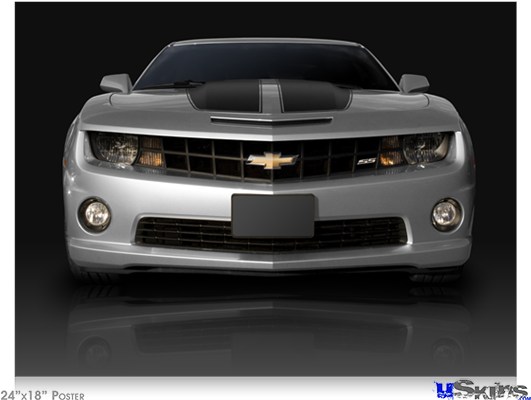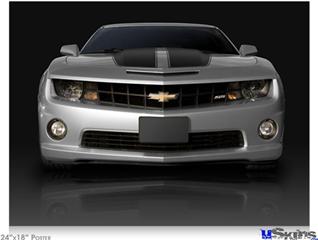 Poster 24"x18" - 2010 Chevy Camaro Silver - Black Stripes on Black