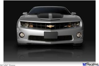 Poster 36"x24" - 2010 Chevy Camaro Silver - Black Stripes on Black