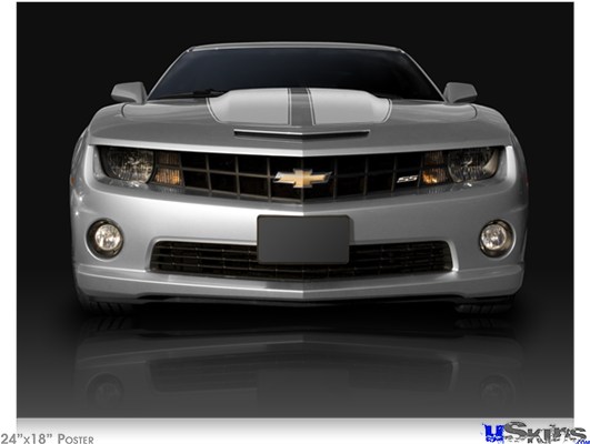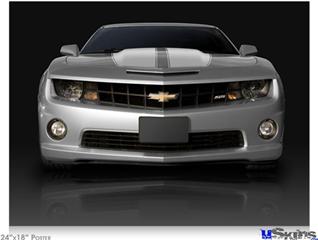 Poster 24"x18" - 2010 Chevy Camaro Silver - White Stripes on Black