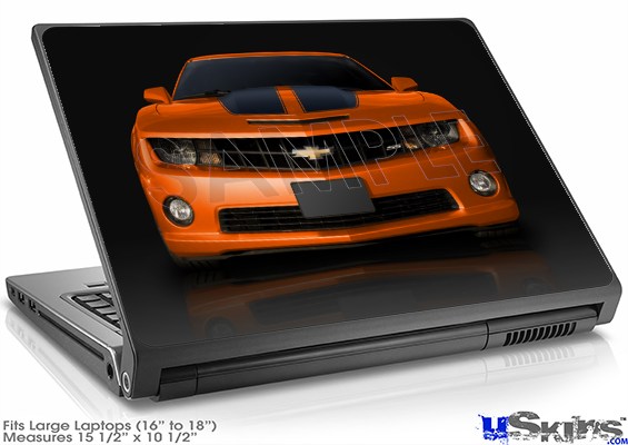 Laptop Skin (Large) - 2010 Chevy Camaro Orange - Black Stripes on Black