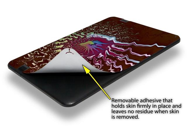 uSkins™ are self adhering vinyl skins that help prevent scratches and look great doing it. Unlike bulky silicon, plastic or metal cases and faceplates, uSkins are designed to be thin and very tough. uSkins are a composite of two layers of commercial grade materials. The bottom layer is a soft, flexible vinyl with a special removable adhesive that is easily positioned, applied without air bubbles, and effortlessly removed without leaving a sticky residue. Next we print the bottom layer with UV protected, fade resistant inks that deliver superb photo quality designs in vibrant colors. Finally we bond a professional grade laminate over the entire skin adding a glossy protective finish.