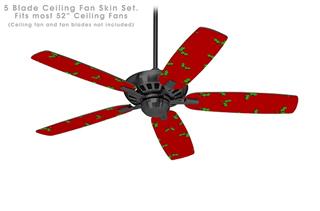 Holly Leaves on Red - Ceiling Fan Skin Kit fits most 52 inch fans (FAN and BLADES SOLD SEPARATELY)