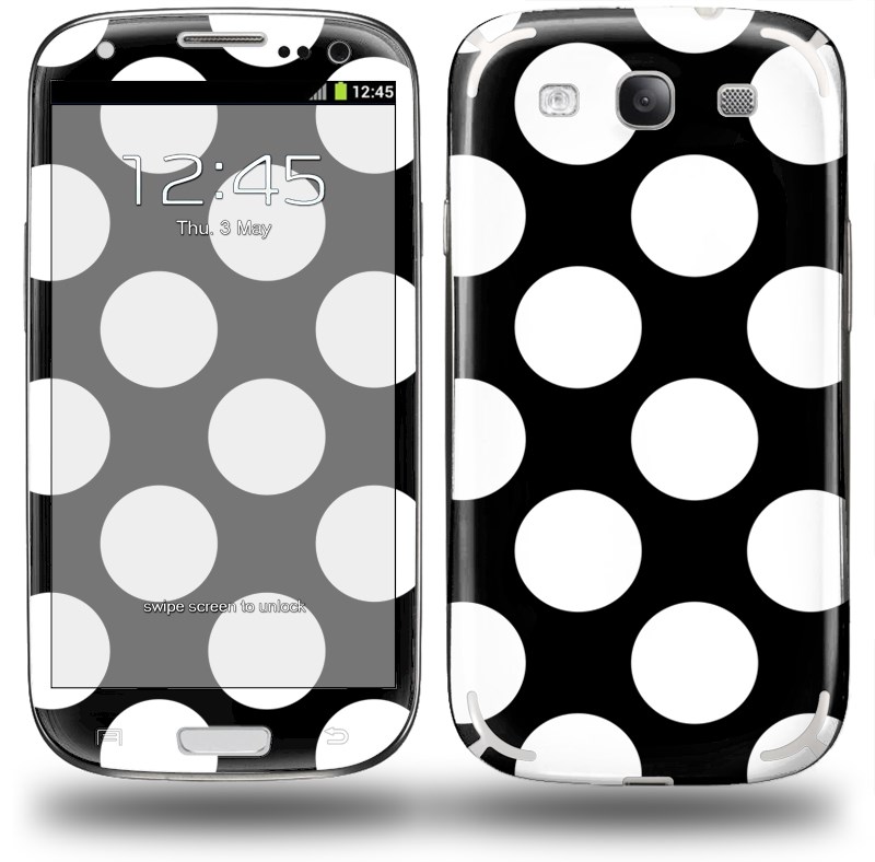 Kearas Polka Dots White On Black - Decal Style Skin (fits Samsung Galaxy S III S3)