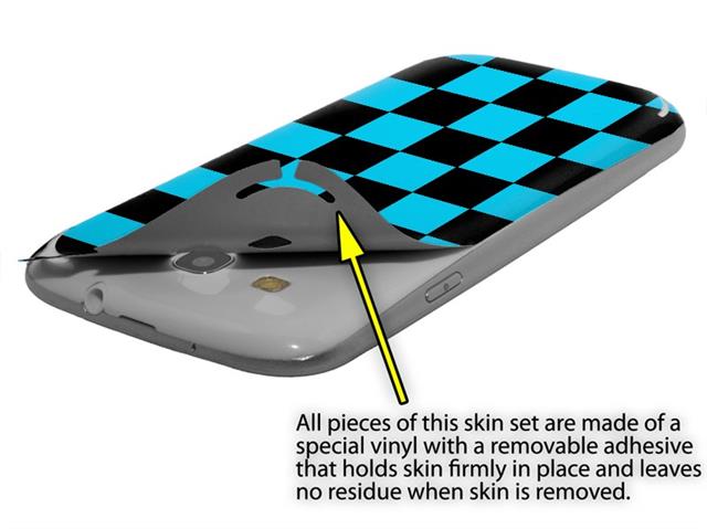 • Decal style vinyl skin covers front and back of Samsung Galaxy S III S3 phone.