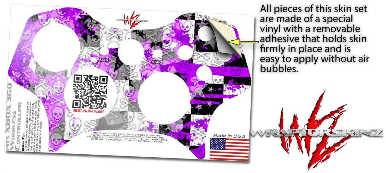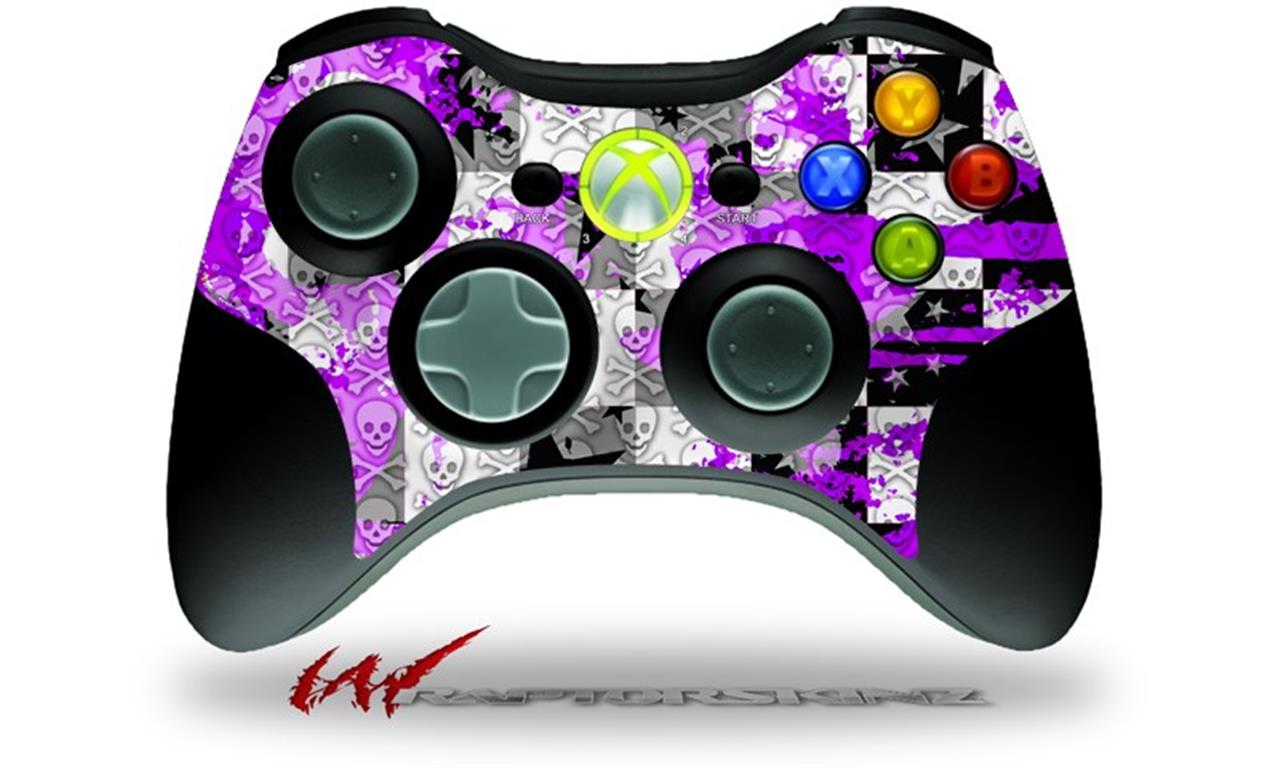 XBOX 360 Wireless Controller Decal Style Skin - Purple Checker Skull Splatter (CONTROLLER NOT INCLUDED)