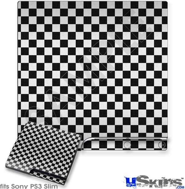 Decal Skin compatible with Sony PS3 Slim Checkered Canvas Black and White