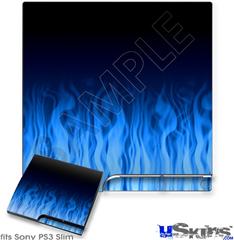 Decal Skin compatible with Sony PS3 Slim Fire Flames Blue