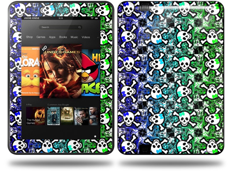 Splatter Girly Skull Rainbow Decal Style Skin fits Amazon Kindle Fire HD 8.9 inch