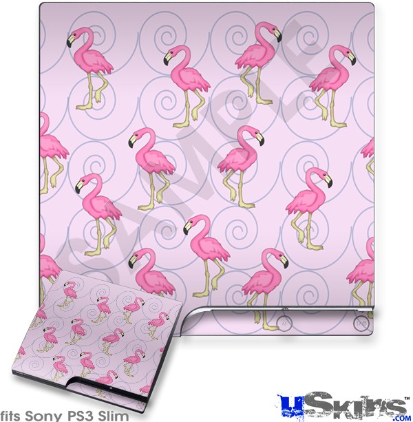 Decal Skin compatible with Sony PS3 Slim Flamingos on Pink