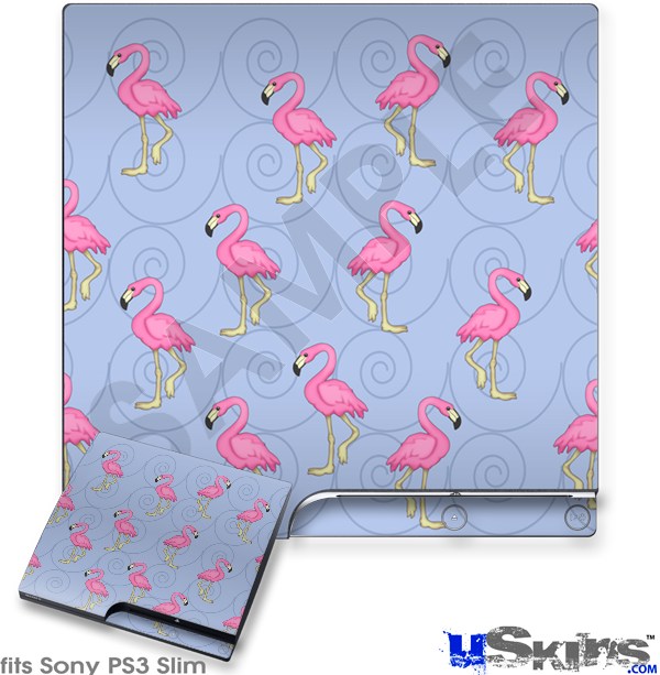 Decal Skin compatible with Sony PS3 Slim Flamingos on Blue