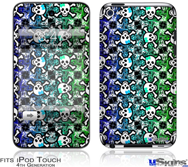 iPod Touch 4G Decal Style Vinyl Skin - Splatter Girly Skull Rainbow