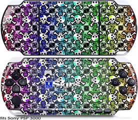 Sony PSP 3000 Skin - Splatter Girly Skull Rainbow