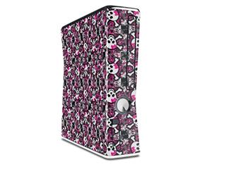Splatter Girly Skull Pink Decal Style Skin for XBOX 360 Slim Vertical