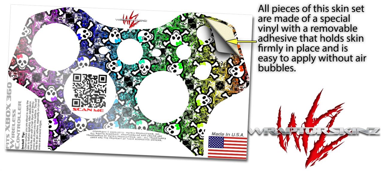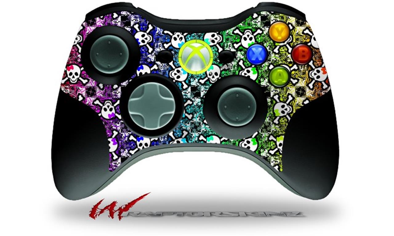 XBOX 360 Wireless Controller Decal Style Skin - Splatter Girly Skull Rainbow (CONTROLLER NOT INCLUDED)