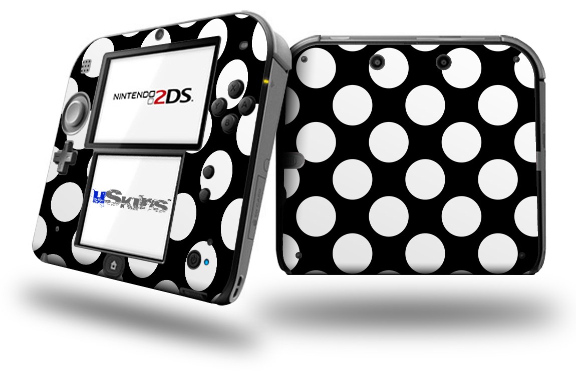 Kearas Polka Dots White On Black - Decal Style Vinyl Skin fits Nintendo 2DS - 2DS NOT INCLUDED