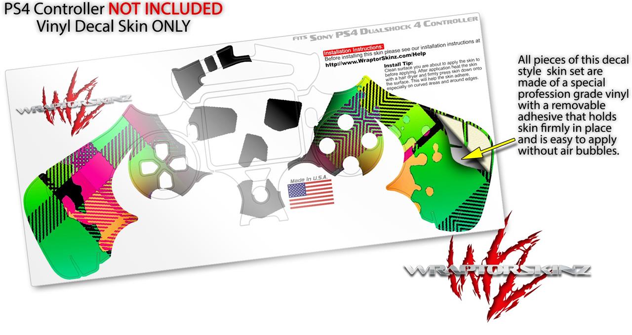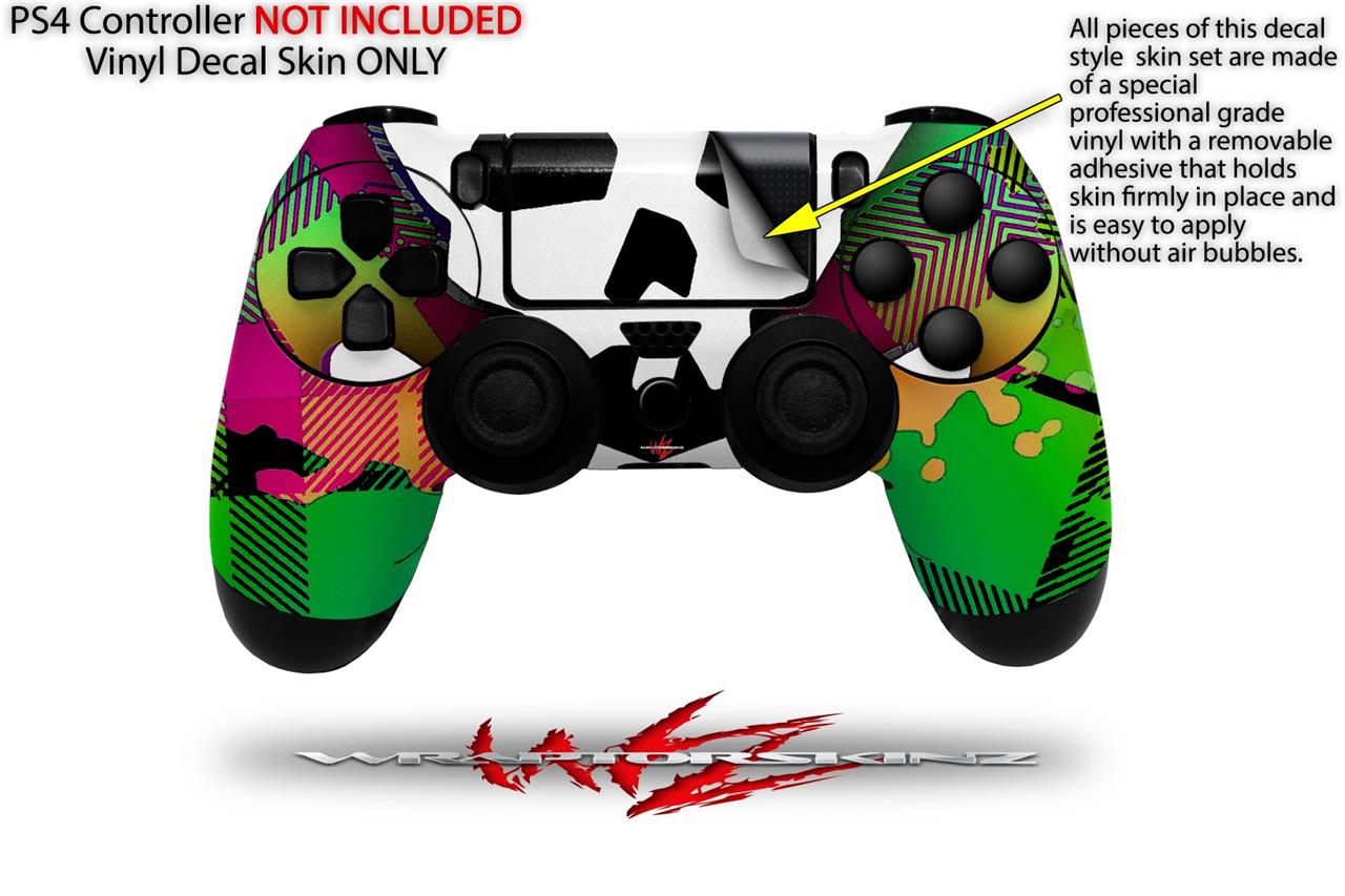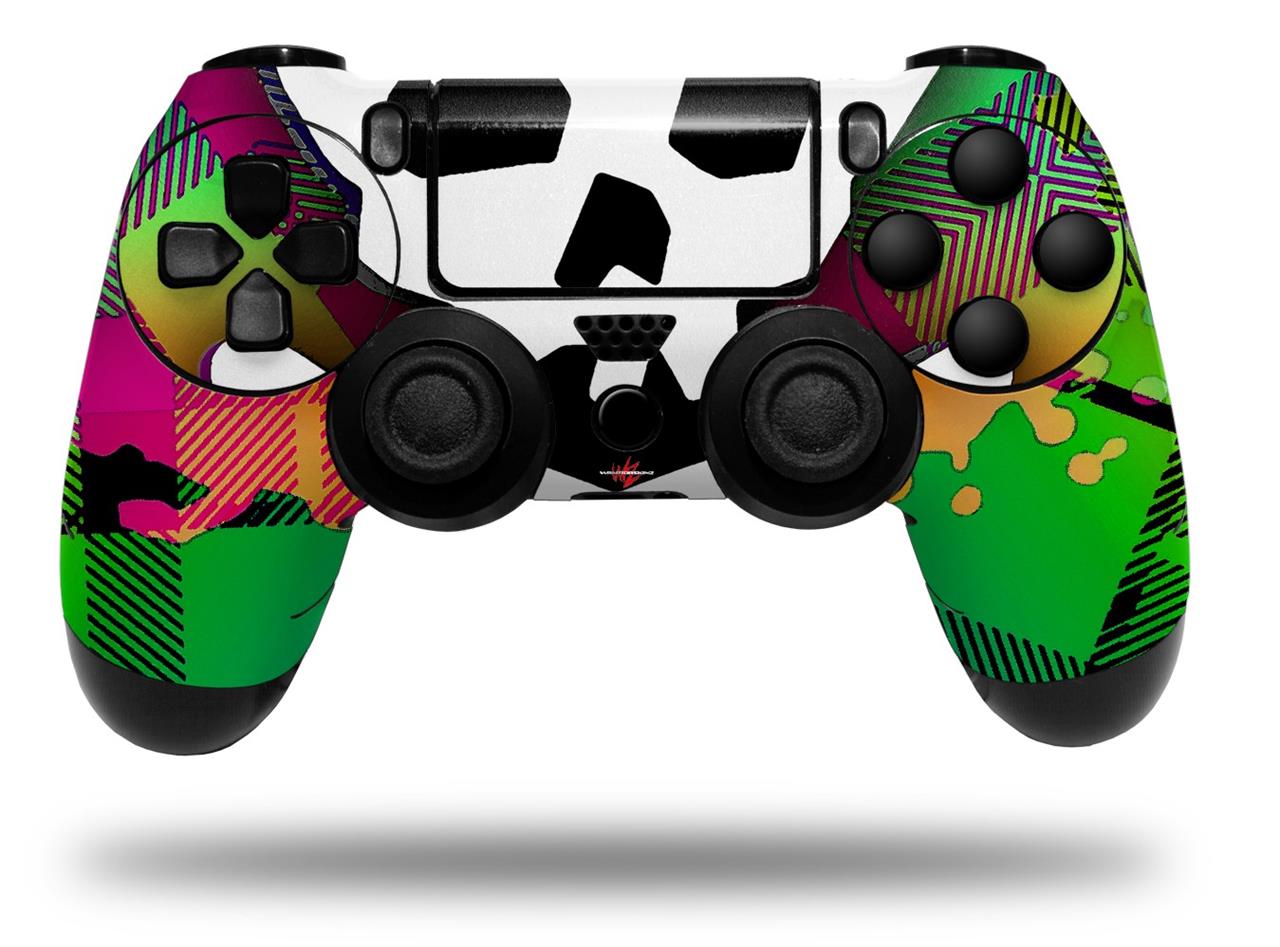 WraptorSkinz Skin compatible with Sony PS4 Dualshock Controller PlayStation 4 Original Slim and Pro Rainbow Plaid Skull (CONTROLLER NOT INCLUDED)