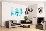 Electro Graffiti Blue - 7 Piece Fabric Peel and Stick Wall Skin Art (50x38 inches)