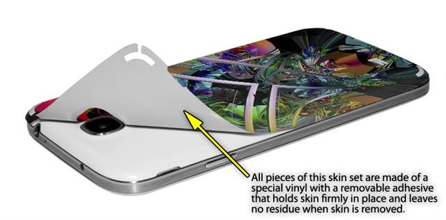 • Decal style vinyl skin covers front and back of Samsung Galaxy S4 phone.
