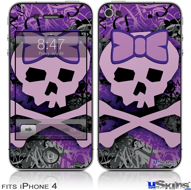 iPhone 4 Decal Style Vinyl Skin - Purple Girly Skull (DOES NOT fit newer iPhone 4S)