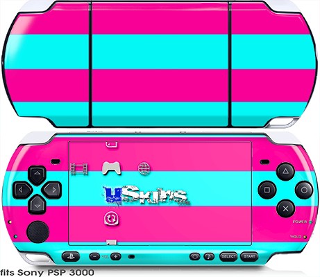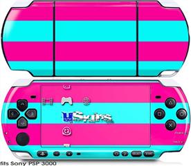 Sony PSP 3000 Skin - Psycho Stripes Neon Teal and Hot Pink