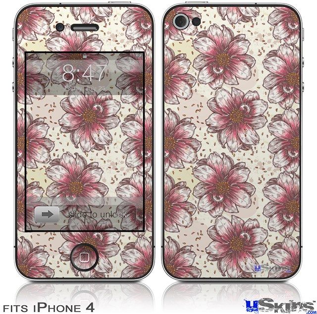 iPhone 4 Decal Style Vinyl Skin - Flowers Pattern 23 (DOES NOT fit newer iPhone 4S)