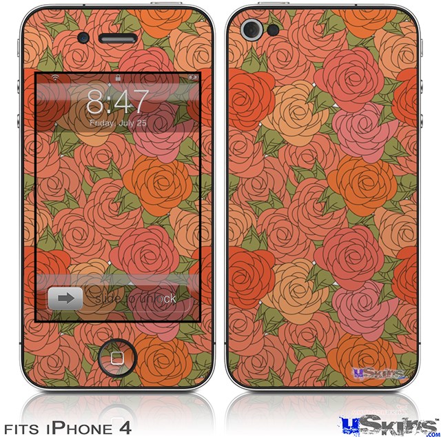 iPhone 4 Decal Style Vinyl Skin - Flowers Pattern Roses 06 (DOES NOT fit newer iPhone 4S)