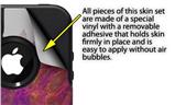 uSkins™ are self adhering vinyl decal style skins and are a great way to add a new look to your protective case. uSkins are a composite of two layers of commercial grade materials. The bottom layer is a soft, flexible vinyl with a special removable adhesive that is easily positioned, applied without air bubbles. Next we print the bottom layer with UV protected, fade resistant inks that deliver superb photo quality designs in vibrant colors. Finally we bond a professional grade laminate over the entire skin adding a glossy protective finish.