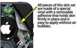 uSkins™ are self adhering vinyl decal style skins and are a great way to add a new look to your protective case. uSkins are a composite of two layers of commercial grade materials. The bottom layer is a soft, flexible vinyl with a special removable adhesive that is easily positioned, applied without air bubbles. Next we print the bottom layer with UV protected, fade resistant inks that deliver superb photo quality designs in vibrant colors. Finally we bond a professional grade laminate over the entire skin adding a glossy protective finish.