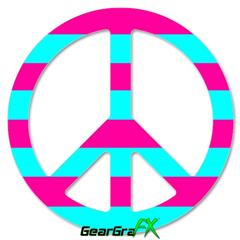 Psycho Stripes Neon Teal and Hot Pink - Peace Sign Car Window Decal 6 x 6 inches