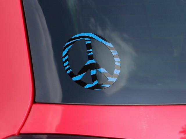 Zebra Blue - Peace Sign Car Window Decal 6 x 6 inches
